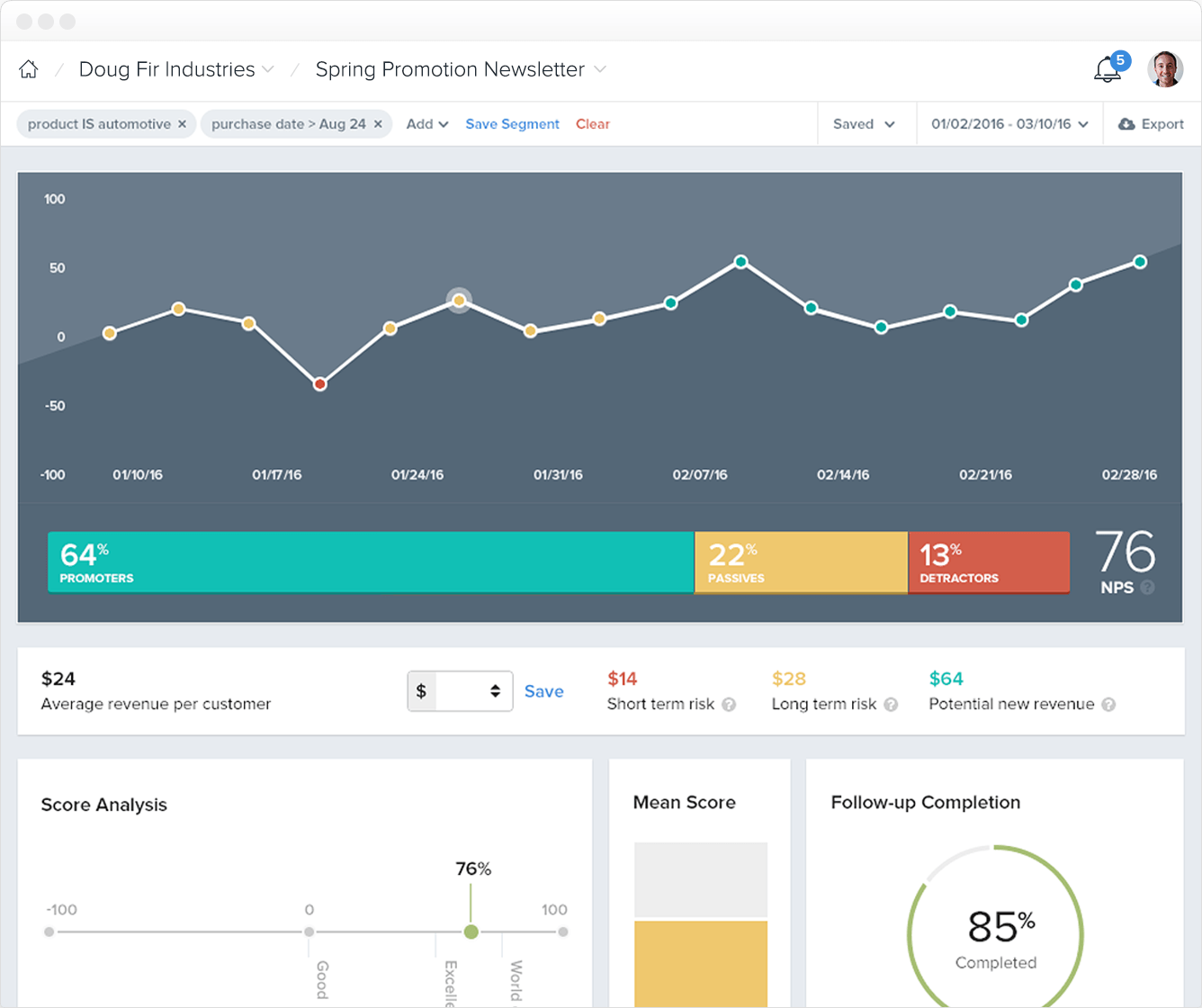Leverage your Net Promoter Score and enriched reporting to measure the ongoing health of your organization and influence strategy. Predict future growth and churn with a reliable, proven KPI.